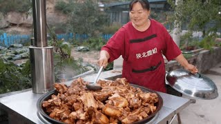 【陕北霞姐】霞姐买来排骨和猪蹄,做一大锅大手拉小手,极致脱骨配饭一绝!
